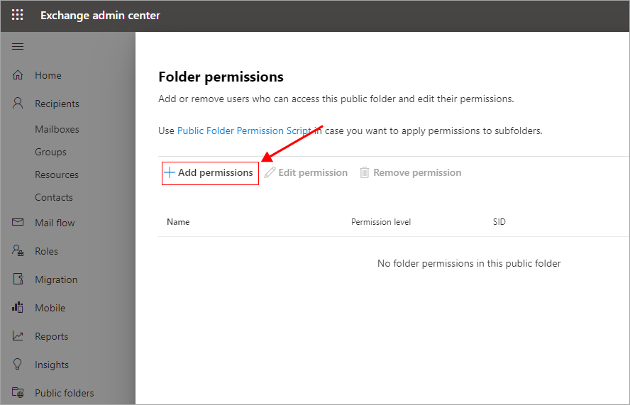 - Close the window and navigate to the ‘Public folders’ tab and click 'Root permissions'