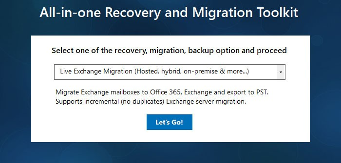 - choose the ‘Live Exchange Migration’ from the dropdown options